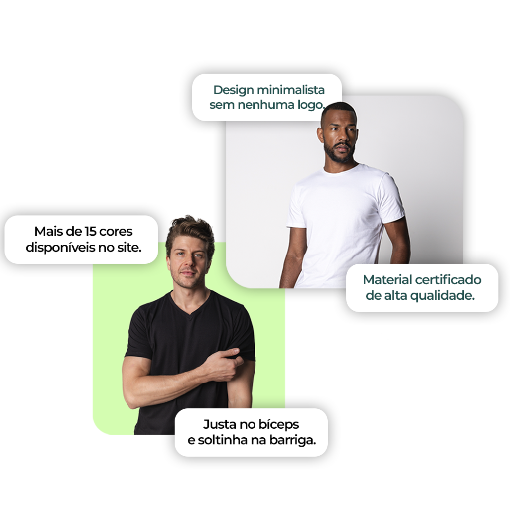 qualidade e durabilidade superior. Além disso, nossas camisetas possuem design